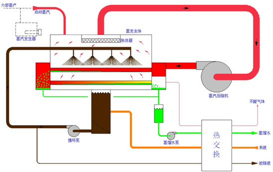 1、MVR臥管蒸發(fā)設備流程